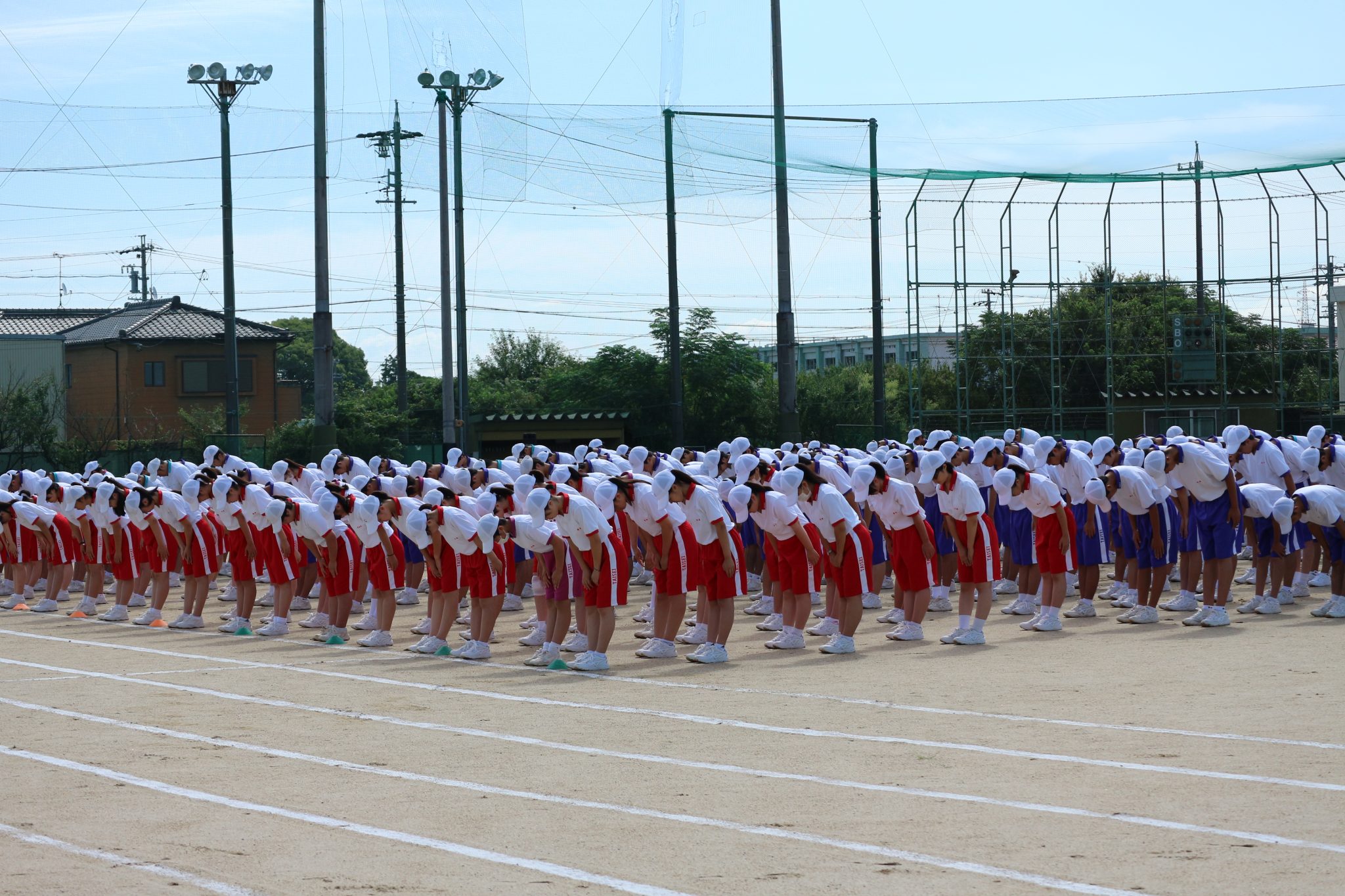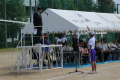 先日の雨により本日に順延となった体育祭ですが、無事に執り行うことができました。公立中学校の校長先生方をはじめご来賓の皆様には、多数ご臨席いただきまして、心より感謝申し上げます。