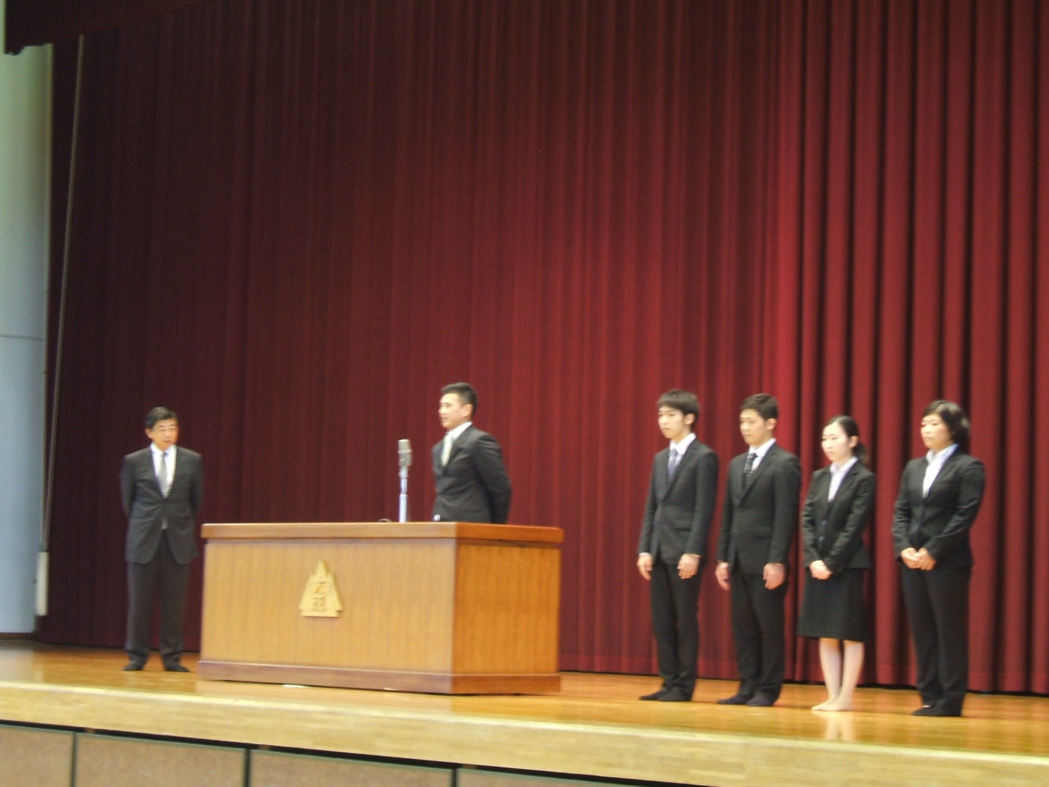 2018年5月30日2018年6月15日 教育実習が始まりました。 5月28日(月曜日)から2週間及び3週間の教育実習が始まりました。 本年度は5名の教育実習生がそれぞれの教科・科目の授業を行い、学級活動や学校行事を行います。 本日の全体朝礼では実習生の紹介がありました。 生徒の皆さんは授業以外でも多くの関わりをもって、実習生から多くのことを学んで下さい。