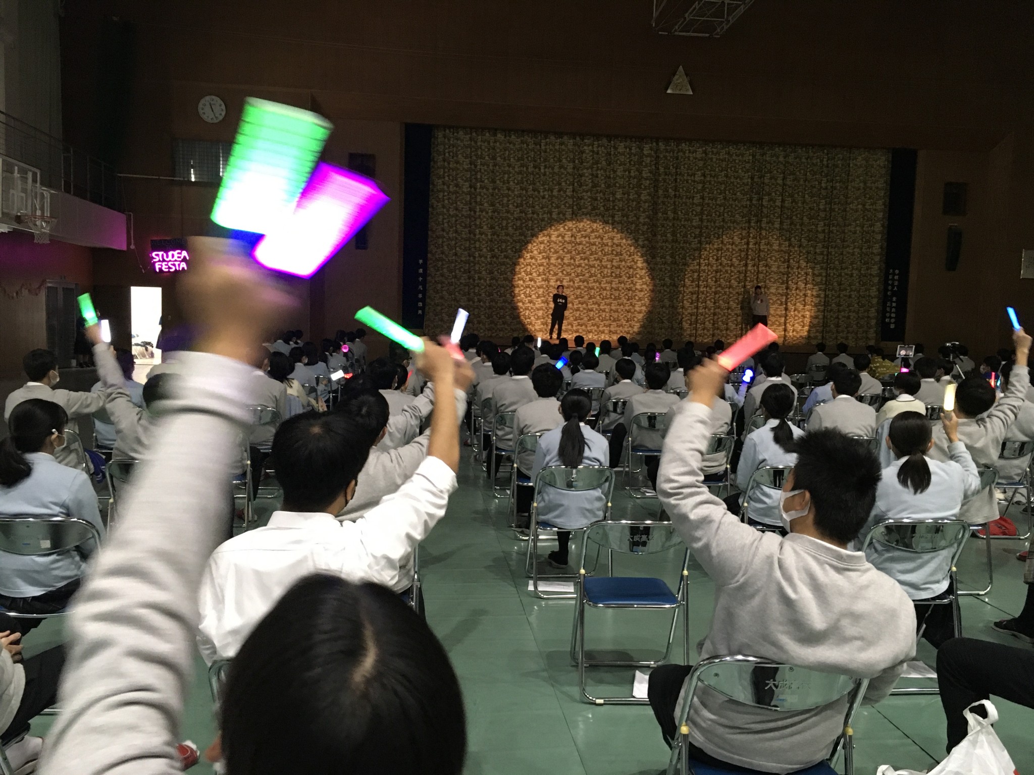 コロナ禍のため、声援はせず生徒たちは手拍子やライトなどで応援をしました。