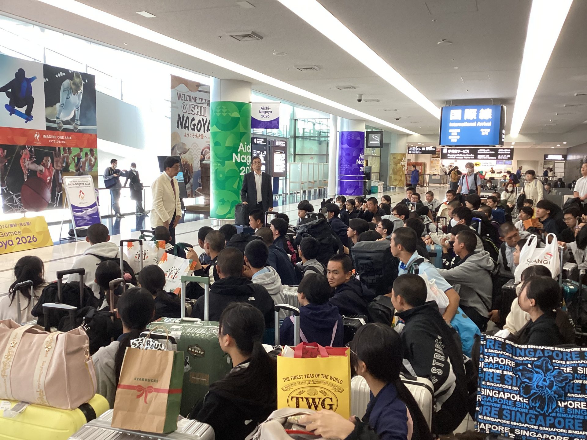 修学旅行1日目は中部国際空港からシンガポール・チャンギ空港に移動しました。