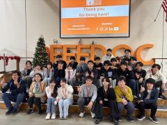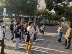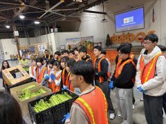 3日目、17日(水)は少し早めの7時50分集合で午前中にフードバンクに行ってボランティアを行いました。今回のボランティアは、集められた食品や野菜、果物の消費期限と状態を確認して使える物と使えない物を分ける作業や、セロリの品質チェックの作業でした。食品の消費期限チェックは室温を低く設定した場所での作業だったため防寒着を着込んで頑張って作業していました。みんな作業方法を教えていただき、真剣に活動していました。午後はカリフォルニア州立大学アーバイン校の見学を行いました。現役大学生の案内でキャンパス内を見学しました。とても広いキャンパスを説明を受けながら歩き、規模の大きさや雰囲気を感じることができました。