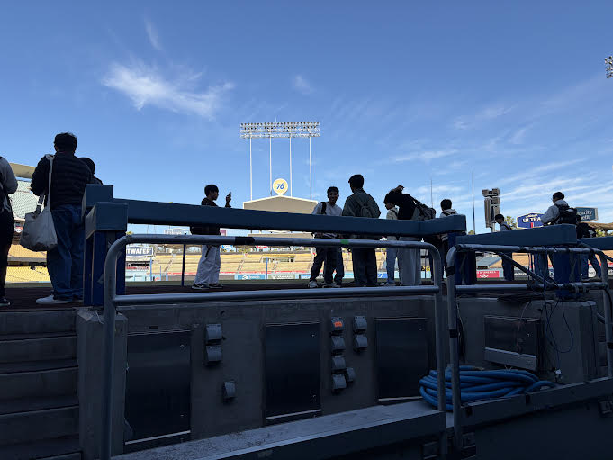 5日目、19日(金)は、ドジャースタジアムの見学に行きました。テレビなどで見る球場を実際に訪れて、その大きさや美しさにみんな感動していました。案内の方にドジャーズの歴史や球場の各階にあるドジャーズに関する資料、ワールドシリーズの優勝カップ、選手のMVPやゴールデングラブの盾などの説明を受け、ビジター側のベンチからフィールドに案内していただきさらに感動していました。その後、ショップでお土産も購入して十分に堪能出来たと思います。その後、スタディーセンターに戻り授業を受けました。この日の授業はホストファミリーへのサンキューレターを書きました。また、クリスマスの歌を英語で練習しました。最後に授業を受けた証明書を受け取って、授業は終了しました。