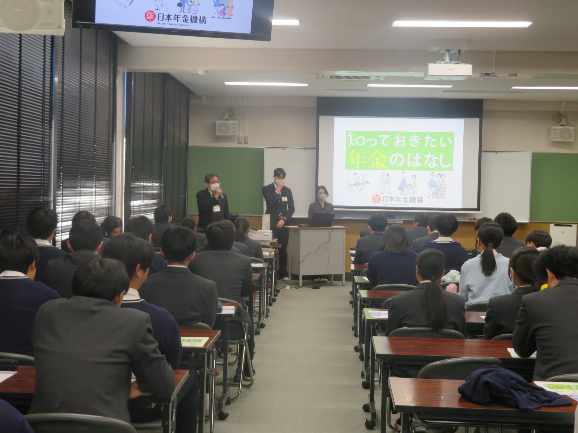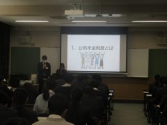 2026年2月9日 「年金教室」を実施いたしました。 本日、プラウディアコース高校3年生の進路決定者を対象に、「年金教室」を実施しました。 一宮税務署から講師の先生をお迎えし、 「知っておきたい年金のおはなし」というテーマで 年金の仕組みや注意点などについて講演をしていただきました。 貴重なお話を聞き、年金について理解を深めることができました。 一宮税務署の職員の皆さん、ご協力ありがとうございました。