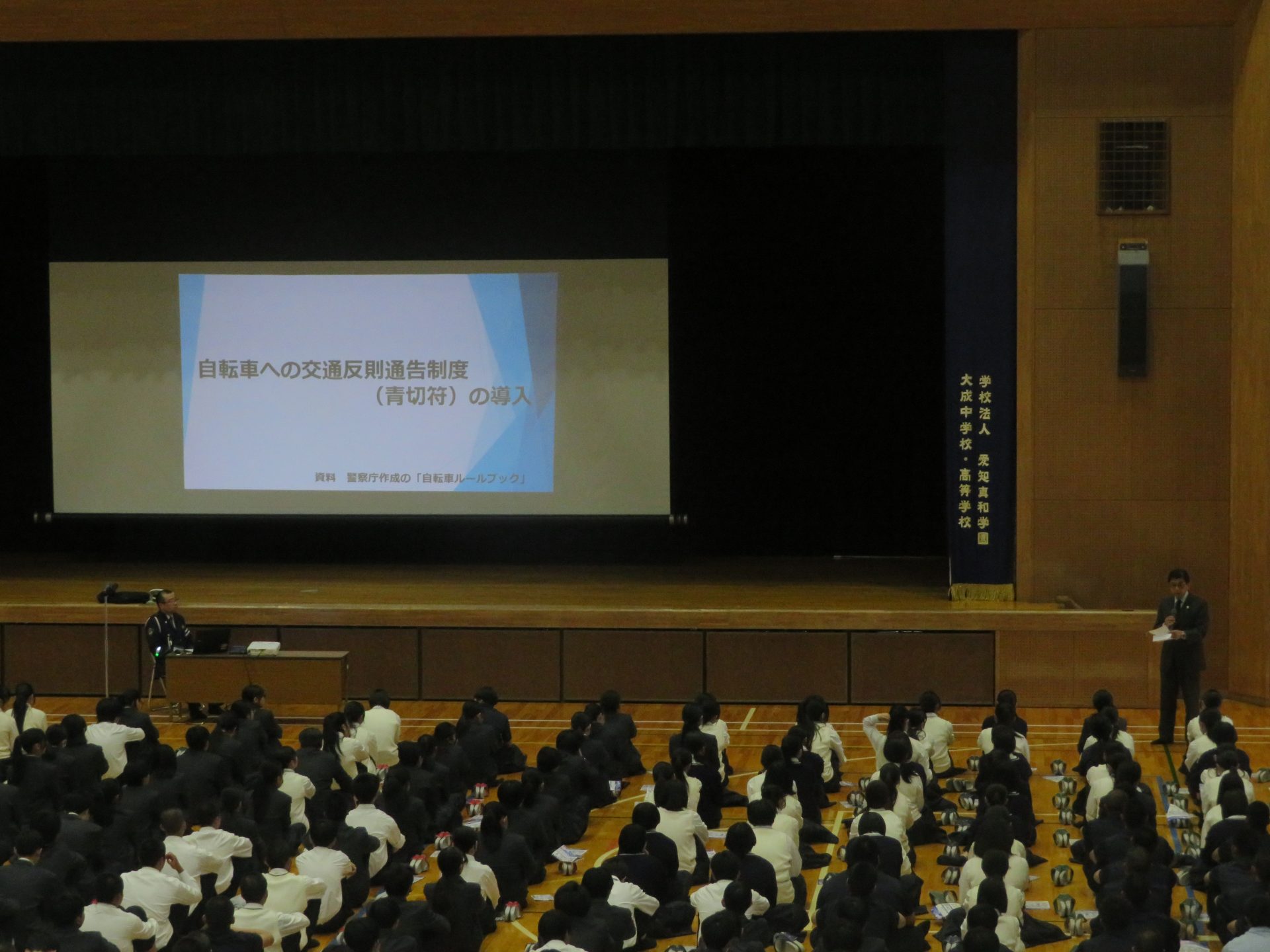 講話を通し、生徒への青切符導入をわかりやすく説明いただき、生徒たちの交通安全に対する意識が高まる貴重な機会となりました。