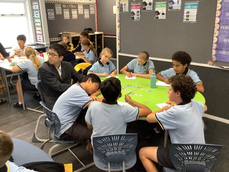 午後の授業では、現地校と一緒に活動しました。生徒たちは3つのグループに分かれ、それぞれの教室で異なるゲームやアクティビティを行いました。一部のグループでは石を使ったマオリのボードゲームを行い、別のグループでは英語のクイズゲームを行いました。また、広い教室で走るマルバツゲームや椅子取りゲームをするグループもありました。生徒たちは現地校の生徒と交流し、英語でルールの説明を真剣に聞き、質問も積極的に英語で行いました。とても楽しい時間を過ごせたと思います。