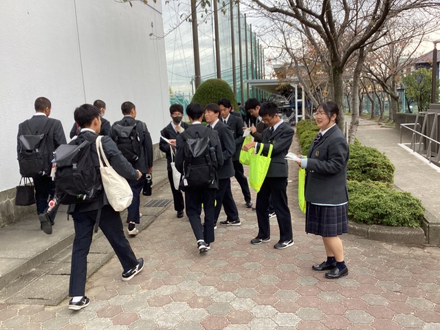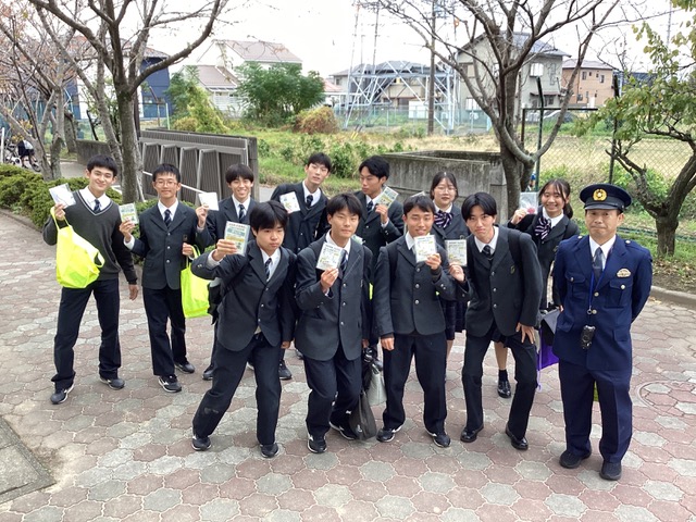 11月4日(月)、一宮警察署の方が来校され、生徒会の生徒とともに「自転車の鍵かけ」や「自転車ルール」に関する啓発運動を行いました。